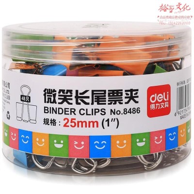 得力8486 微笑长尾票夹 【8486长尾票夹筒装(混)(48只/筒)】6筒装SKU:yzwhyp845995