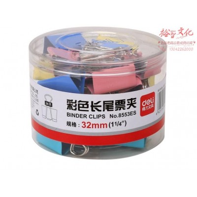 得力8553ES彩色长尾票夹筒装(得力8553ES彩色长尾票夹筒装(混)(24只/筒)混)(24只/筒)SKU:yzwhyp846015