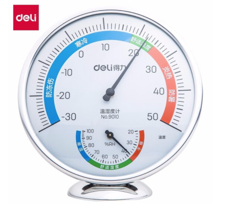 得力9010室内温湿度计(银色)(只)SKU:yzwhyp846160