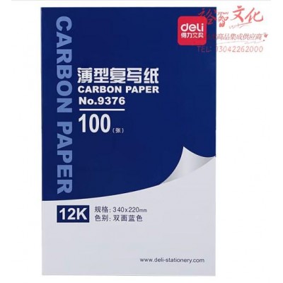 得力9376薄型复写纸(蓝)(34*22cm)-12K(100张/盒)SKU:yzwhyp846258
