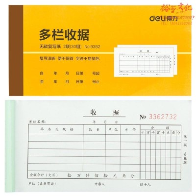 得力9382二联多栏收据(黄)87*175mm(本)SKU:yzwhyp846267