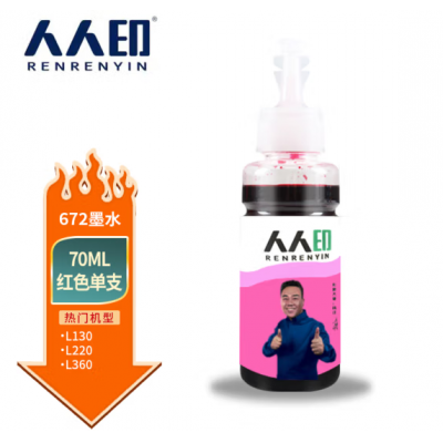 人人印672墨水70ml红色适用爱普生EPSONL360/L310/L380/L351/L130/L313/L301/L1300/L383打印机