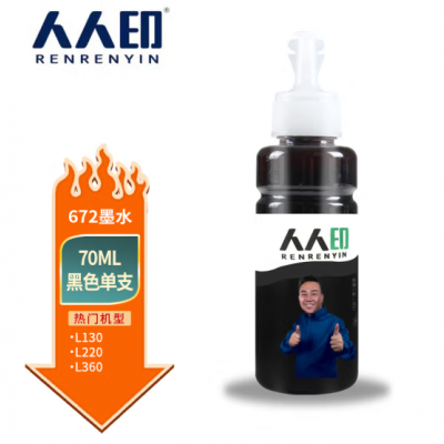 人人印672墨水70ml黑色适用爱普生EPSONL360/L310/L380/L351/L130/L313/L301/L1300/L383打印机