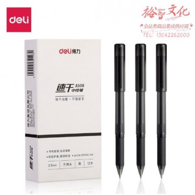 得力A108速干中性笔0.5mm子弹头(黑).SKU:yzwhyp846393