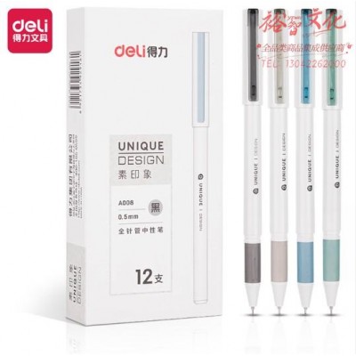 得力A008学生中性笔0.5mm全针管(黑).SKU:yzwhyp846396