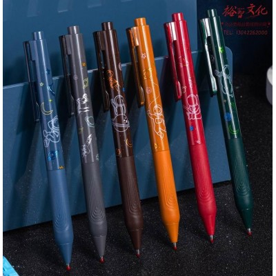 得力A130中国航天复古色学生按动中性笔0.5mm子弹头(混)(6色/PET盒)SKU:yzwhyp846407