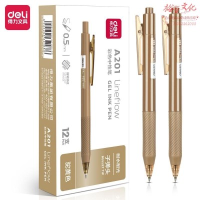 得力彩色中性笔按动笔高颜值学生用0.5mm子弹头按动式做笔记专用重点标记手账笔手绘笔 驼黄色-12支装-A201SKU:yzwhyp846417