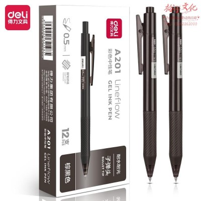 得力彩色中性笔按动笔高颜值学生用0.5mm子弹头按动式做笔记专用重点标记手账笔手绘笔 棕黑色-12支装-A201SKU:yzwhyp846423