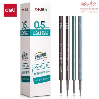 得力(deli)金致臻顺滑按动笔芯中性笔替芯 学生办公笔替换芯 0.5mmST头加强针管 20支/盒A5003SKU:yzwhyp846424