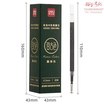得力A5060复古色中性笔替芯按动0.5mm子弹头(墨绿色)(20支/盒)(定制)SKU:yzwhyp846432