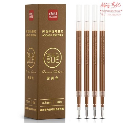得力A5060复古色中性笔替芯按动0.5mm子弹头(驼黄色)(20支/盒)(定制)SKU:yzwhyp846435