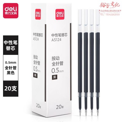 得力A5124常销系列0.5mm按动中性笔笔芯全针管替芯黑色20支/盒 得力A5124常销系列0.5mm按动全针管(黑)SKU:yzwhyp846441