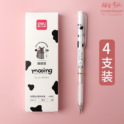 首页 > 办公用品 > 笔 > 得力加强全针管中性笔走珠笔速干笔0.5mm学生用全针管考试用黑色水笔办公书写笔会议签字笔牛年主题款笔 奶牛中性笔A款-4支/盒 0.5mmSKU:yzwhyp846449