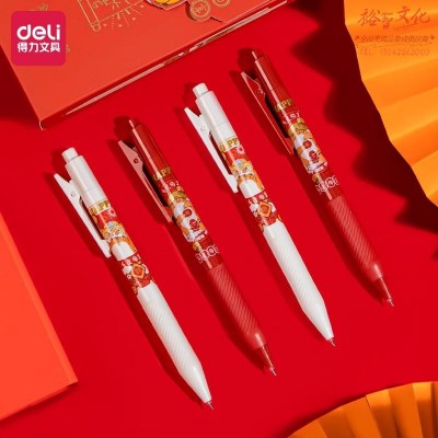 得力(deli) 【有虎同享】顺滑按动中性笔虎年学生办公全针管时尚签字笔高颜值按压0.5mm黑色水笔 12支装-有虎同享-A642SKU:yzwhyp846463