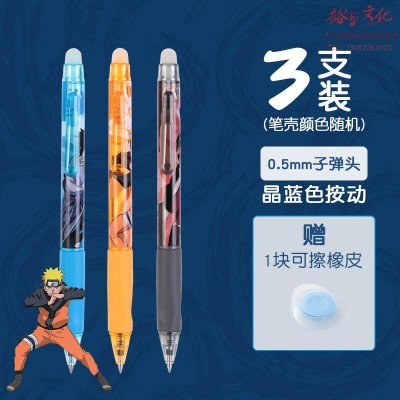 得力【火影忍者】按动可擦中性笔可擦笔0.5mm学生用矫姿笔 [3支装]晶蓝/可擦橡皮SKU:yzwhyp846474
