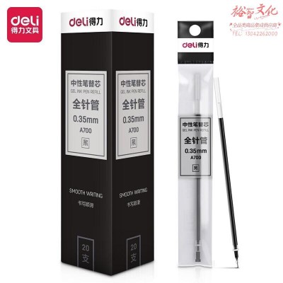 得力(deli)0.35mm全针管黑色中性笔笔芯 水笔签字笔替芯 20支/盒 A700SKU:yzwhyp846478
