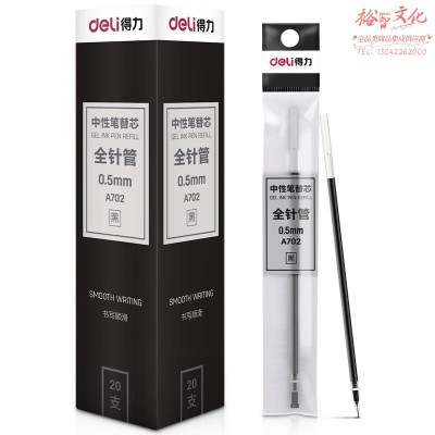 得力(deli)拔帽笔中性笔替芯0.5mm全针管笔头学生办公通用A702 得力A702学生中性替芯0.5mm全针管(黑)(SKU:yzwhyp846483