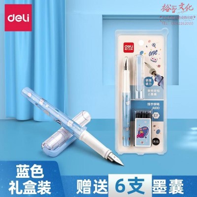 得力(deli) 小学生练字钢笔套装 明尖暗尖矫姿签字笔 学生正姿可擦纯蓝钢笔EF颜色随机 A930 1支钢笔 6支墨囊SKU:yzwhyp846491