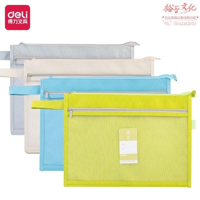 得力(deli) A4文件袋网格拉链袋档案办公资料袋试卷票据收纳袋 网纱拉边袋 A4网纱袋【双层-BA152颜色随机】SKU:yzwhyp846521
