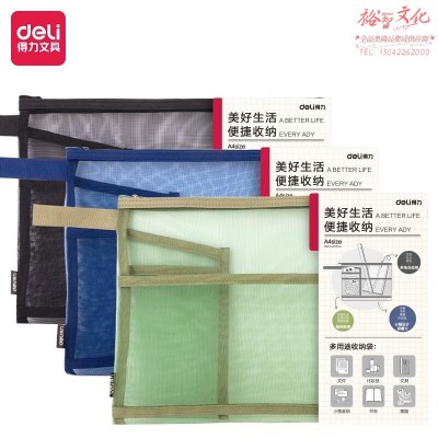 得力(deli) A4文件袋网格拉链袋档案办公资料袋试卷票据收纳袋 网纱拉边袋 A4网纱袋【双层-BA146颜色随机】SKU:yzwhyp846522