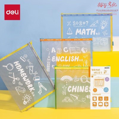 得力(deli) A4科目袋文件袋 趣味学科网纱拉链袋 带提手学生分类收纳 作业资料试卷文具袋 单只BA154颜色随机SKU:yzwhyp846527