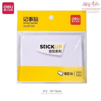 得力得力百事贴便签纸彩色即时贴便利贴N次记事贴办公学生便条贴纸一个 101*76mm纯白80张BT129SKU:yzwhyp846683