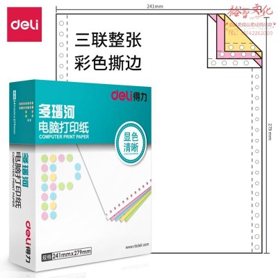 得力多瑙河D241-3电脑打印纸(CS彩色撕边)(1000页/盒)SKU:yzwhyp846699