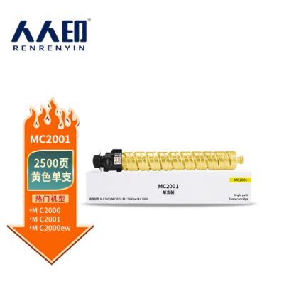 人人印MC2001粉盒黄色标准容量适用理光MC2000粉仓 Ricoh MC2001粉盒M C2000ew