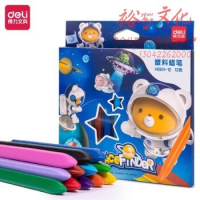 得力HE901-12彩盒装细三角杆塑料蜡笔(混)(12色/盒)SKU:yzwhyp847071