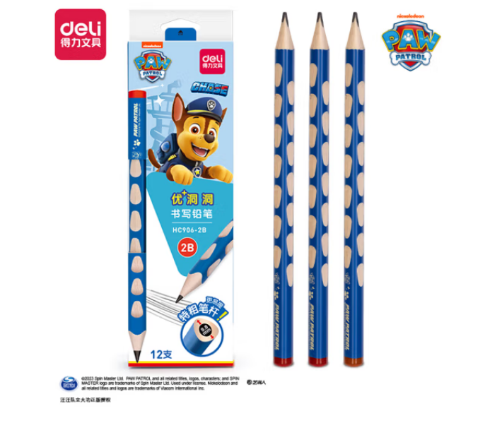 得力(deli)HC906 2B洞洞笔汪汪队铅笔 三角杆特粗 12支/盒装SKU:yzwhyp847073