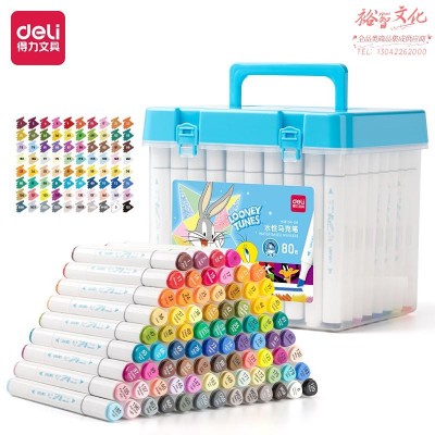 得力HM104-80_兔巴哥三角杆水性马克笔(混)(80色/筒)SKU:yzwhyp847088