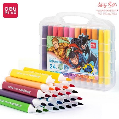 得力HM513-24_PP盒装正义联盟粗三角杆食品级软头水彩笔(混)(盒)SKU:yzwhyp847095
