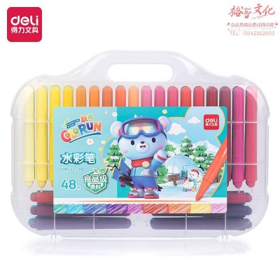 得力HM512-48_PP盒装萌咿滑雪粗圆杆食品级水彩笔(混)(盒)SKU:yzwhyp847097