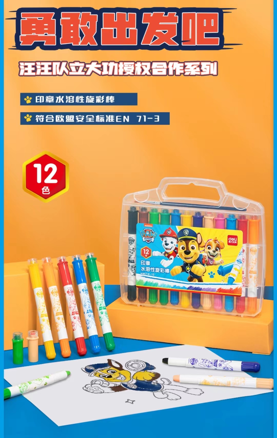 得力HM718-12 汪汪印章水溶性炫彩棒(12色/盒))SKU:yzwhyp847098