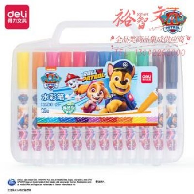 得力HM516-12_汪汪队PP盒装食品级圆杆水彩笔(混)(12色/盒)SKU:yzwhyp847104