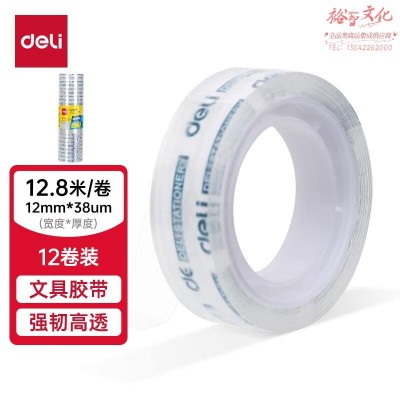 得力(deli)高透文具胶带/小胶带 强韧性 12mm*14y*38μm 12卷/筒 JD770透明SKU:yzwhyp847142