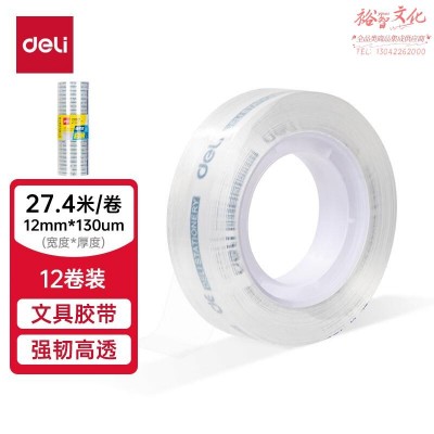得力(deli)高透文具胶带/小胶带 强韧性 12mm*30y*38μm 12卷/筒 JD771透明SKU:yzwhyp847143