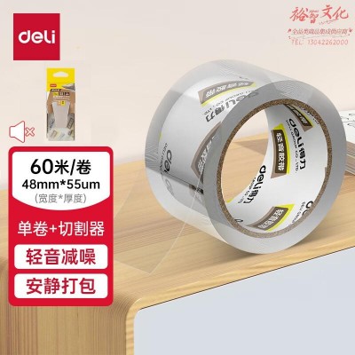 得力(deli)48mm*60m*55μm 小卷芯低噪透明封箱胶带轻音减噪 (1卷/pcs)(高透) 切割器 JD81SKU:yzwhyp847147