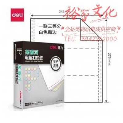 首页 > 纸及纸质品 > 纸及纸板(不包含复印纸) > 得力 deli 莱茵河 L241-1 电脑打印纸 (1/3S白色撕边)(盒)1000张/盒SKU:yzwhyp847174