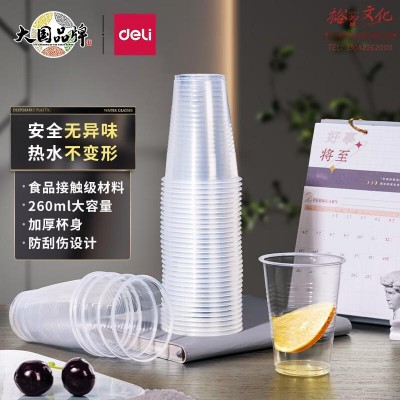 得力(deli)260ml一次性塑料杯(透明)(100只/包) LL500-100SKU:yzwhyp847237