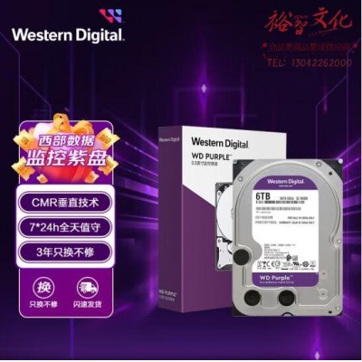 西部数据 监控级硬盘 WD Purple 西数紫盘 6TB 256MB SATA CMR (WD64PURZ)SKU:yzwhyp847662