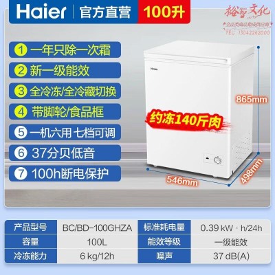 海尔(Haier)冰柜家用100升单温卧式小冷柜冷藏冷冻一级能效冷柜冷冻冰柜商用大容量冰箱 【冰箱伴侣】100升约冻140斤肉SKU:yzwhyp847737