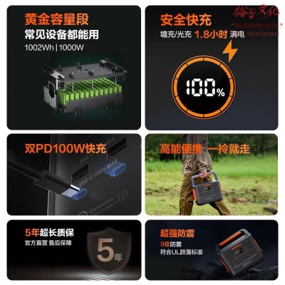 首页 > 电气设备 > 蓄电池及充电装置 > 电小二 【1.8小时双快充】【应急备电】 快充户外电源1000W大容量大功率220V移动电源应急停电电池储能 1000Pro 太阳能板200WSKU:yzwhyp847783