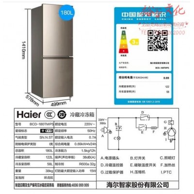 海尔(Haier)180升双门冰箱 BCD-180TMPS 金色SKU:yzwhyp847812