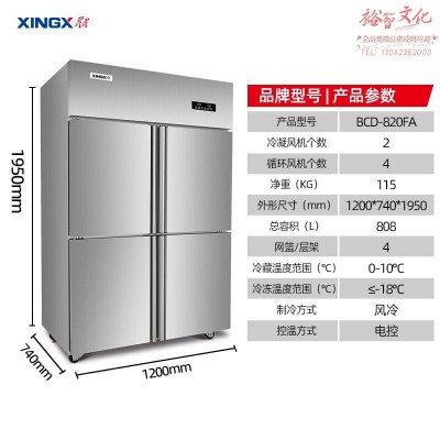 星星(XINGX)四门冰箱商用纯铜管风冷无霜立式冰柜双温 冷藏冷冻不锈钢多门冰箱 BCD-820FASKU:yzwhyp847832