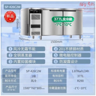海尔(Haier)厨房工作台冰柜377升1.5米 风冷无霜全冷藏食材保鲜柜 酒店后厨不锈钢操作台SP-426C2WSKU:yzwhyp847868