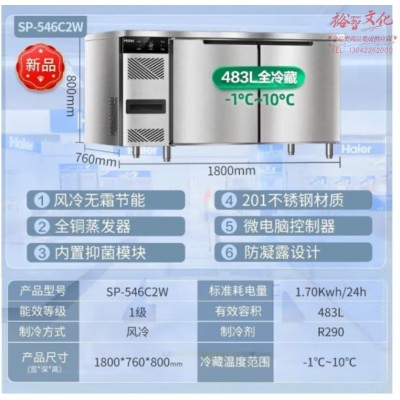 海尔(Haier)厨房工作台483升1.8米 风冷无霜全冷藏食材保鲜柜 酒店后厨不锈钢操作台冷柜SP-546C2WSKU:yzwhyp847870
