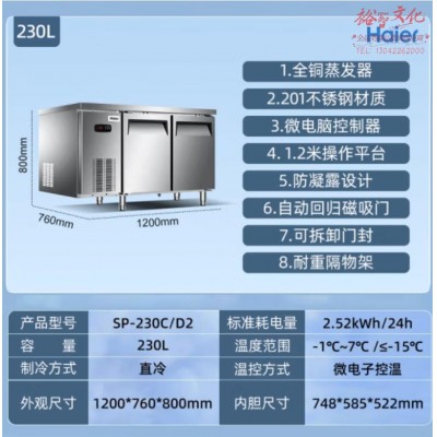 海尔 SP-230C/D2 卧式不锈钢操作台 (冷藏冷冻转换)230LSKU:yzwhyp847873
