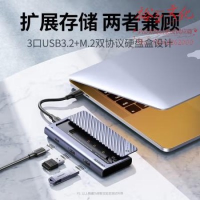 绿联 M.2硬盘盒扩展坞 NVMe/SATA双协议移动硬盘盒分线器四合一拓展 Type-C/USB3.2外置盒固态M2盒子铝合金SKU:yzwhyp847913