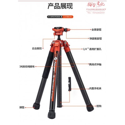 富图宝(Fotopro)空气三号lite 全景云台碳纤维相机微单摄影摄像三脚支架 火焰橙 重/0.8KG 手机夹SKU:yzwhyp848199